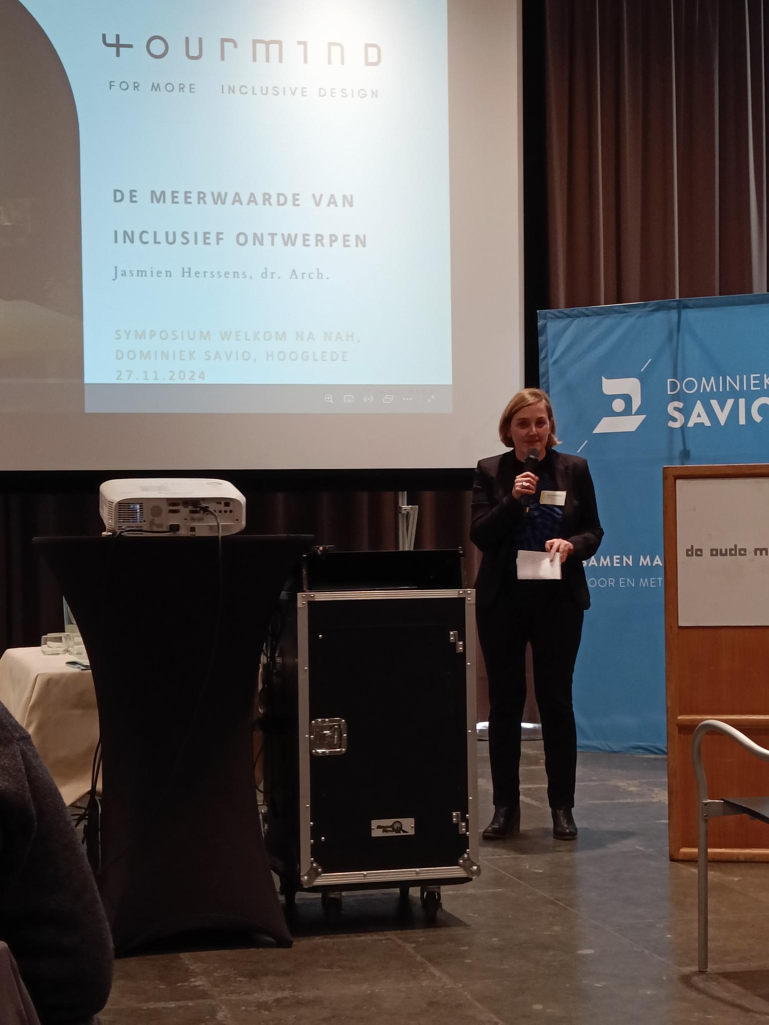 Tijdens het symposium illustreerde Hilde Pitteljon, coördinator Centrum Consult, het verloop van het volledige onderzoek. Jasmien Herssens, zaakvoerder van fourmind, nam de deelnemers mee in de wereld van inclusief ontwerpen. Er was ruimte voor een videogetuigenis van Nadja Vanhelden, echtegenote van een patiënt met NAH, en een interview met Fien Vandenbossche, persoonlijk assistent bij PASVU.